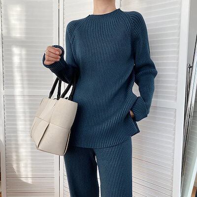 秋冬 新作 おしゃれ 気質 上下レディースセットアップ ニット アウター ベーシックニット 二点セット セーター ワイドパンツ セットアップ 通勤 長袖セーター 福袋