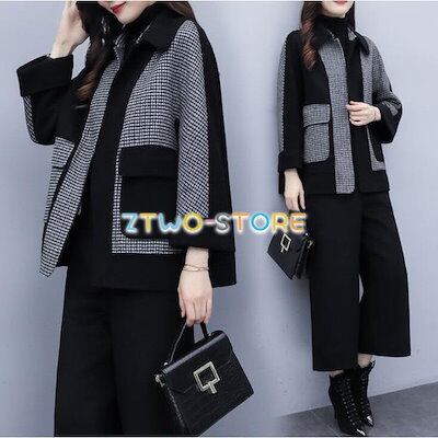 セットアップ パンツスーツ おしゃれ ガウチョパンツ カジュアル格子柄 ジャケット ラシャ レディース フォーマル 結婚式 入学式 卒業式 通勤 秋冬