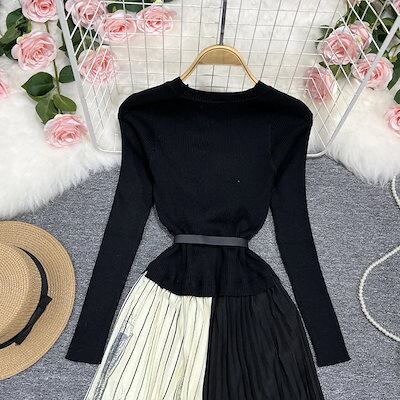 カシミヤタッチ セットアップ キャミワンピース 【限定特売】韓国ワンピース インナー 秋冬 セーター レディース きれいめ 長袖 ハーフネック ニット ドレス チュニック小柄 小香風 通勤 着痩せ エ