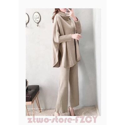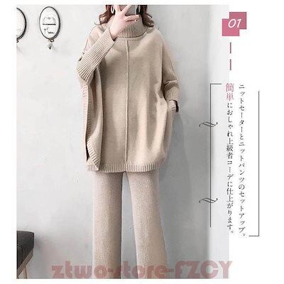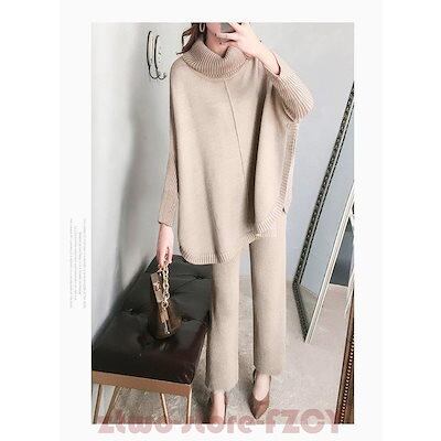 セットアップ ニットセーター 秋冬 レディース ワイドパンツ ニットパンツ 2点セット 30代 40代 50代 お洒落 ママ トップス 入園式 卒業式 セレモニー 上品