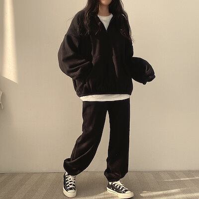 秋冬 セットアップ 裏起毛 長袖 おしゃれ レディース トップス パーカー ズボン 二点セット 運動 韓国ファッション スウェット セットアップ