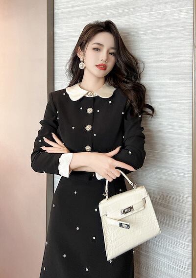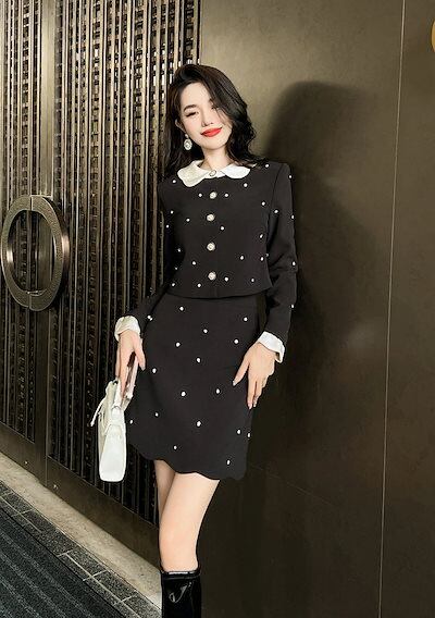 【JY.上品】 2023秋冬 上下セット ダイヤモンド飾り レディース ワンピース風 セットアップ ドレス パーティー キャバ 着痩せ 大人 同窓会 披露宴 卒業式 結婚式 演奏会 ウェディング 二次