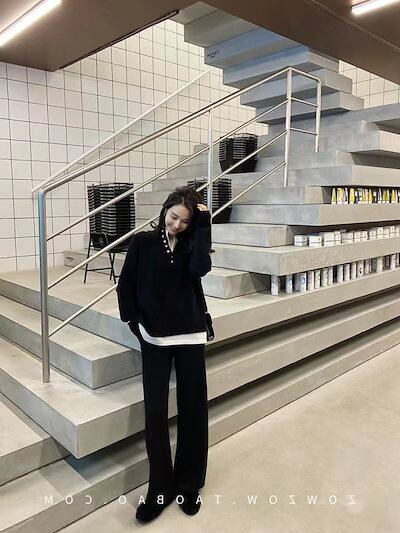 秋冬 2点セット カジュアル 気質 おしゃれ セーター トップス+ワイドパンツ ニットおしゃれ 百掛け レディースセットアップ