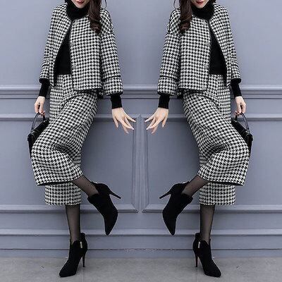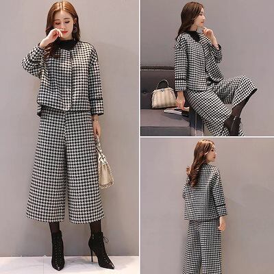 二点セット2024新作 人気セットアップ 春アウター 九分丈パンツ フレアパンツ 初秋 ゆったり ワイドパンツ ノーカラージャケット 厚手 千鳥格子 高級感
