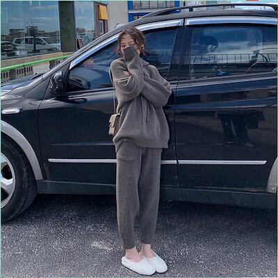 2024レディース 秋冬 ニット上下セットニットセットニット+ワイドパンツゆる体型カバークール長袖 無地 カジュアル新作 おしゃれ