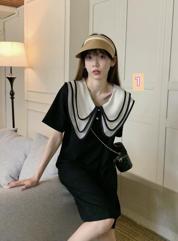 2022春夏新作 女 レディース ハイウエスト 半袖 ミニ ワンピース ドレス タイトスカート 台型スカート