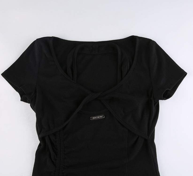 2022春夏新作 女 レディース ハイウエスト 半袖 ミニ ワンピース ドレス タイトスカート S-L