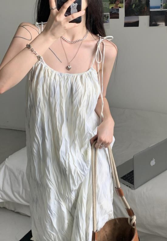 2022春夏新作 女 レディース ハイウエスト 袖なし 吊りスカート ロング ワンピース 台型スカート 2色