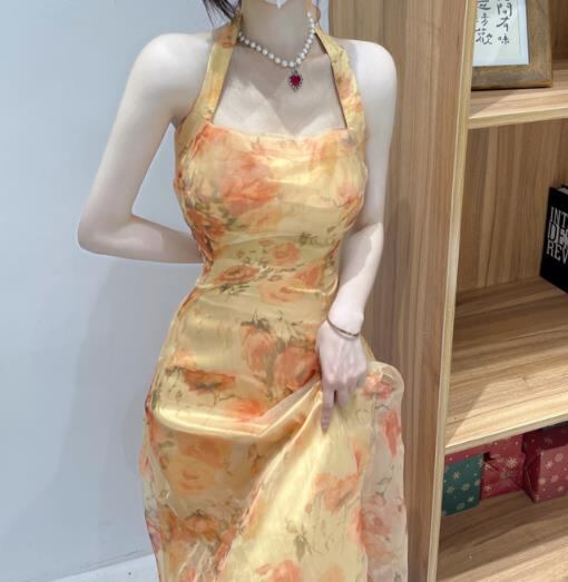 2022春夏新作 女 レディース ハイウエスト 袖なし 吊りスカート ロング ワンピース 台型スカート S-L