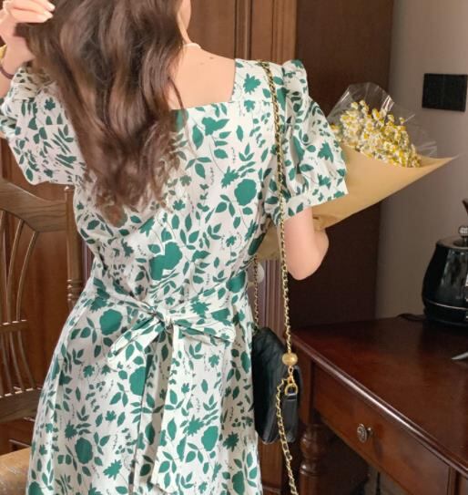 2022春夏新作 女 レディース ハイウエスト 半袖 花柄 ロング ワンピース 台型スカート S-2XL