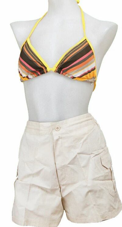 水着 レディース 体型カバー セパレート 3点セット ショートパンツ サーフパンツ ホルターネック ビキニ セット ボーダー柄 3点