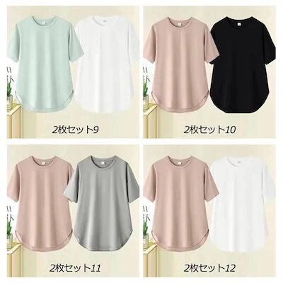半袖 レディース 2枚組 トップス 夏 夏用 サマー 接触冷感 ロング丈 5分袖 春夏 ヨガウェア ゆったり ストレッチ フィットネス スポーツ 吸