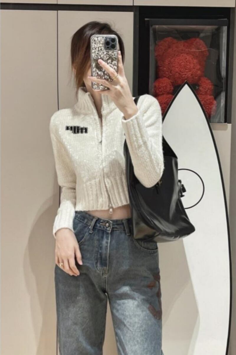 フレンチジッパーカーディガン女性の秋ライト高級ショートトップ小さなセータースパンコールヘビーニットセーター小さなジャケット オータム 秋物 パンツ スカート ya0211b45165435119 | Yaruruuu21-import