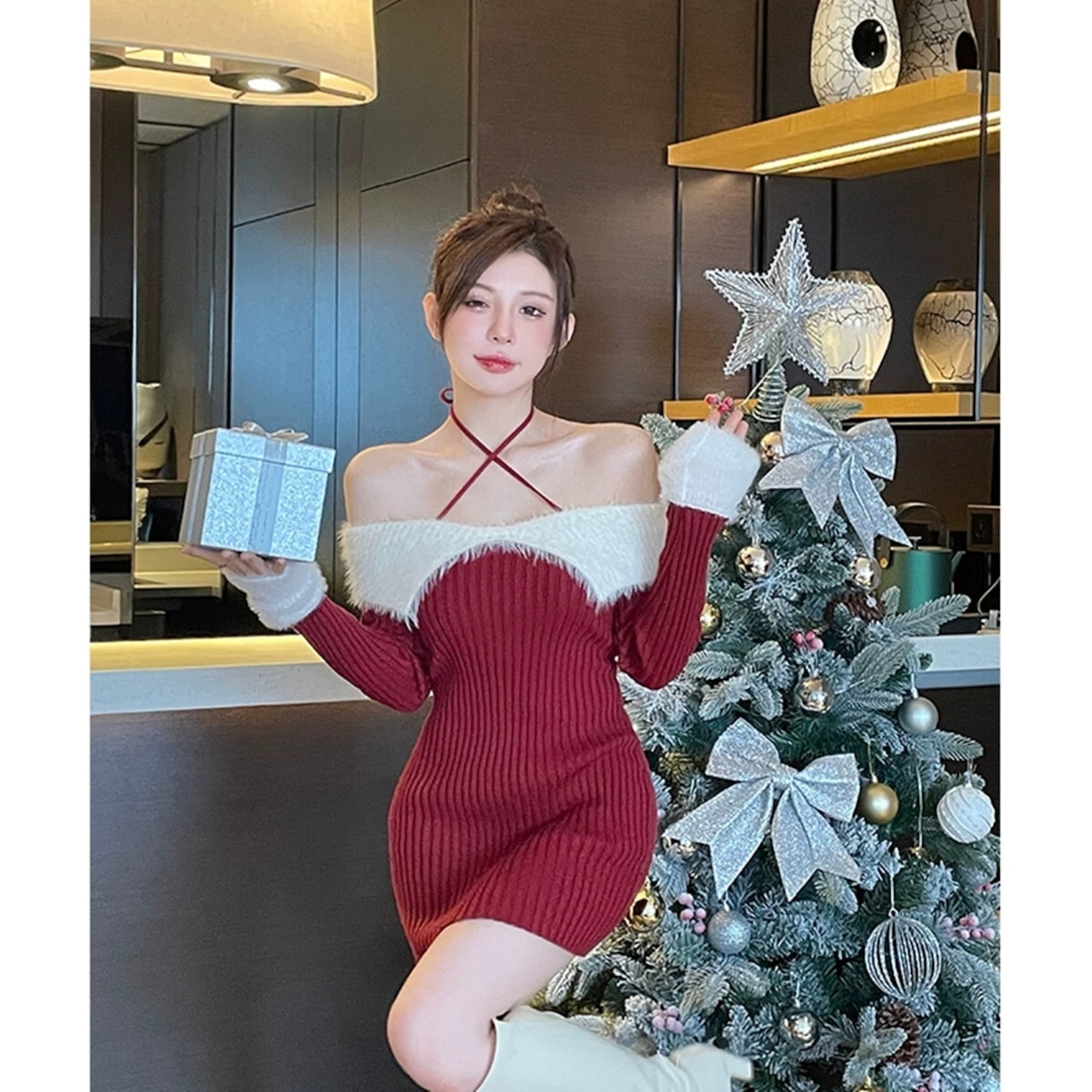 秋と冬のセータードレスワンショルダーホルターネックニットクリスマス限定純粋な欲望スリムセクシーな気質ドレス オータム 秋物 ウィンター 冬物 ピュア パンツ スカート ya0211b2067562781 | Yaruruuu21-import