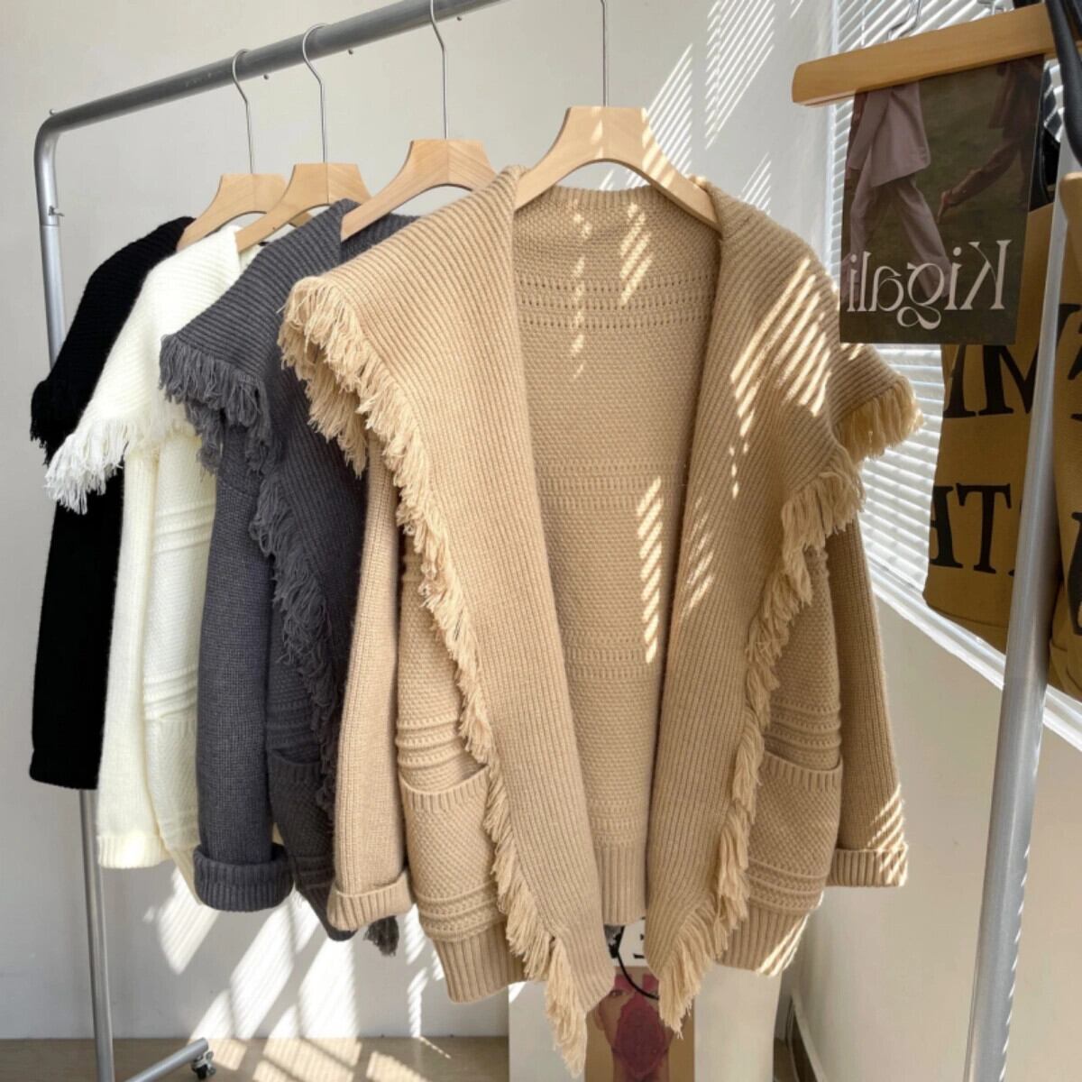 ショールセーターカーディガン女性の 2023 秋怠惰なスタイルの女性のソリッドカラーの気質ゆったりと多用途のセータージャケット オータム 秋物 パンツ スカート ya0211b51984776140 | Yaruruuu21-import