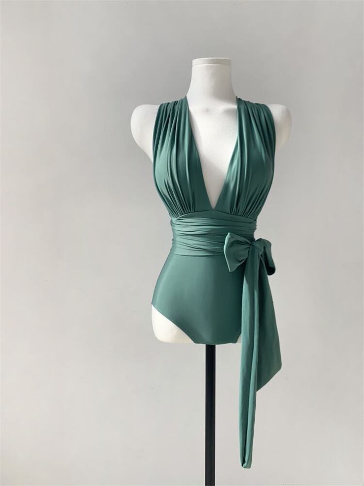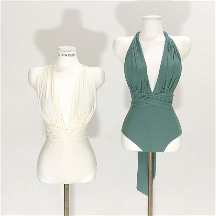早い者勝ち レトロ 着痩せ ビキニ 深いVネック 大人気 セクシー 水着 ストラップ