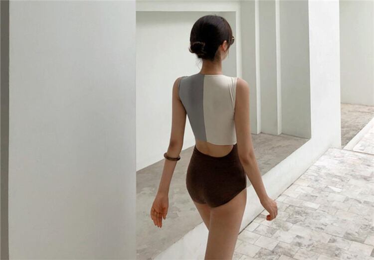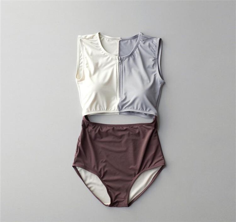 韓国ファッション 小さな香りの風 カラーマッチング ジッパー 透かし彫り ンビネゾン 温泉 水着 女性 簡約