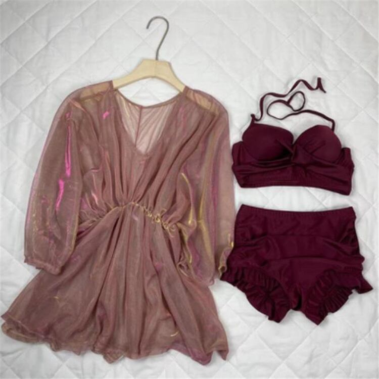 INSスタイル セクシー スリム 水着 女性 3点セットスプリット 保守的 カバー腹