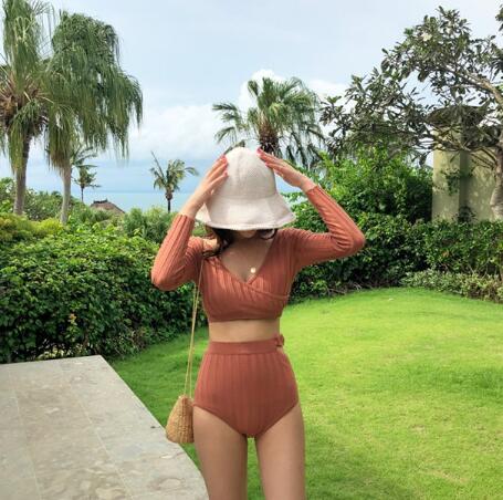 Bikini 水着 韓国風 水泳 上下セット ビキニ プール 速乾★★ 水着 レディース おしゃれ ビーチ ビキニ リゾート プール 体型カバー スリム 可愛い インスタ映え セパレート 露出控えめ 盛れるハイウエスト 韓国 日焼け対策 競泳 スイムウェア日焼け防止 スタイルアップ 着痩せ