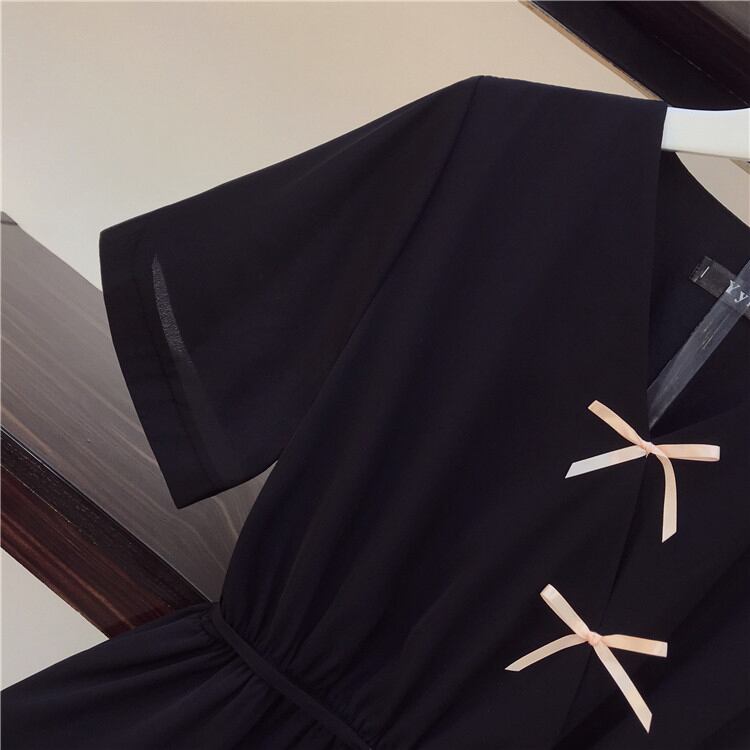 通勤する 大きいサイズ 中・長セクション百掛け カバー腹 Vネック 半袖 ワンピース