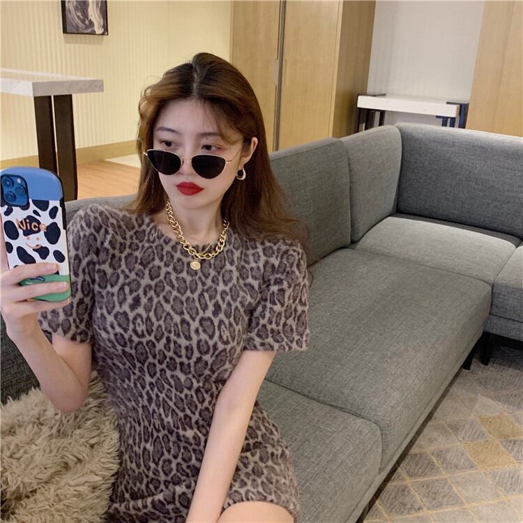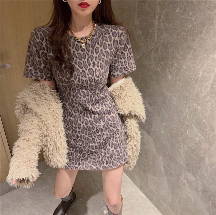 スリム レオパード柄 ワンピース 気質 百掛け 半袖 暖かい 厚手 減齢 2021年新作 秋 冬 カジュアルTREWPL36975135