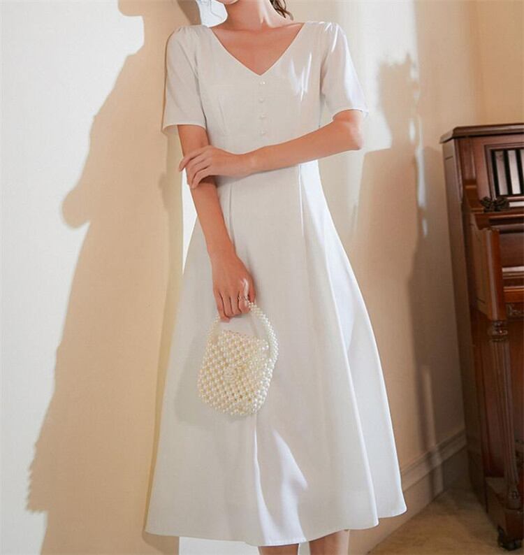 雑誌やSNSで話題 ジェントルスタイル 簡約 2 WAY 半袖 Vネック ワンピース ハイウエスト エレガントTREWPL36975143