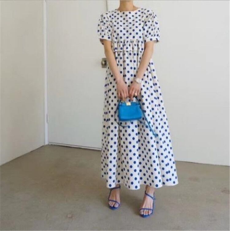 ワンピース ドット ハイウエスト カジュアル 百掛け ゆったりする ロングスカート
