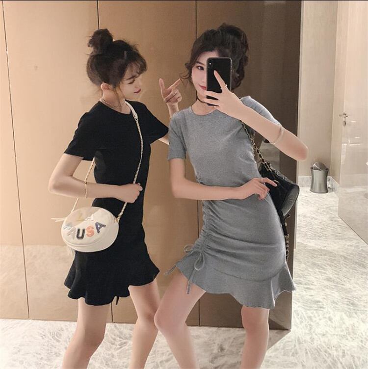 激安セール スリムフィット 半袖 ワンビース 夏 巾着 Tシャツスカート フリル ショートスカート