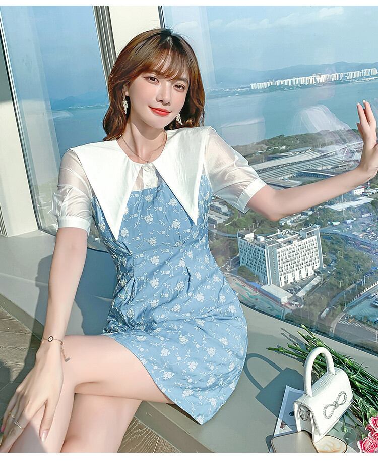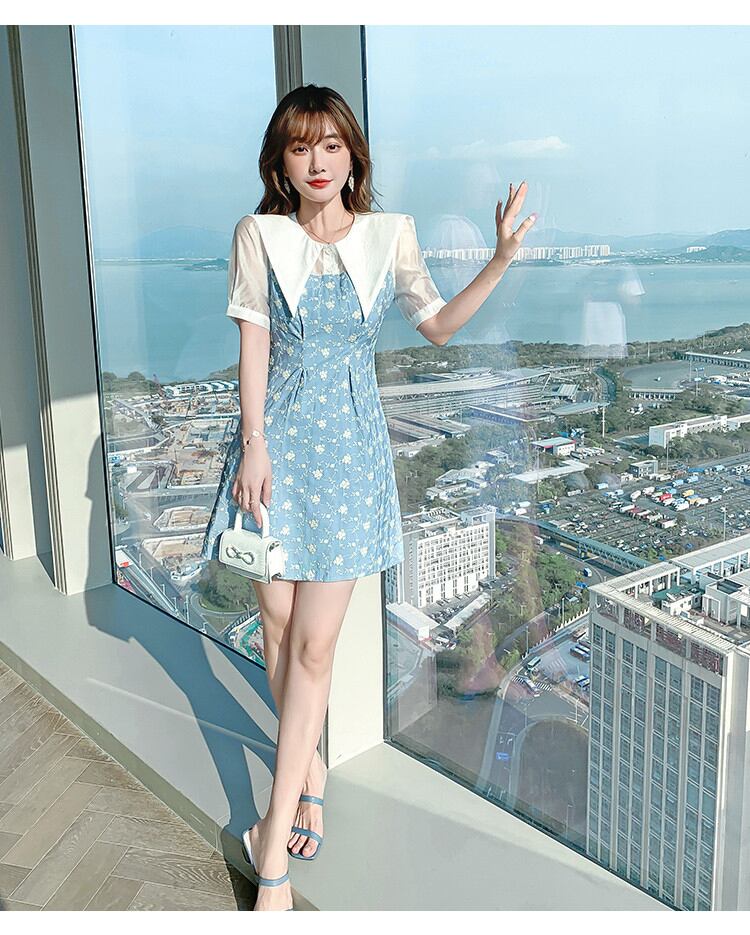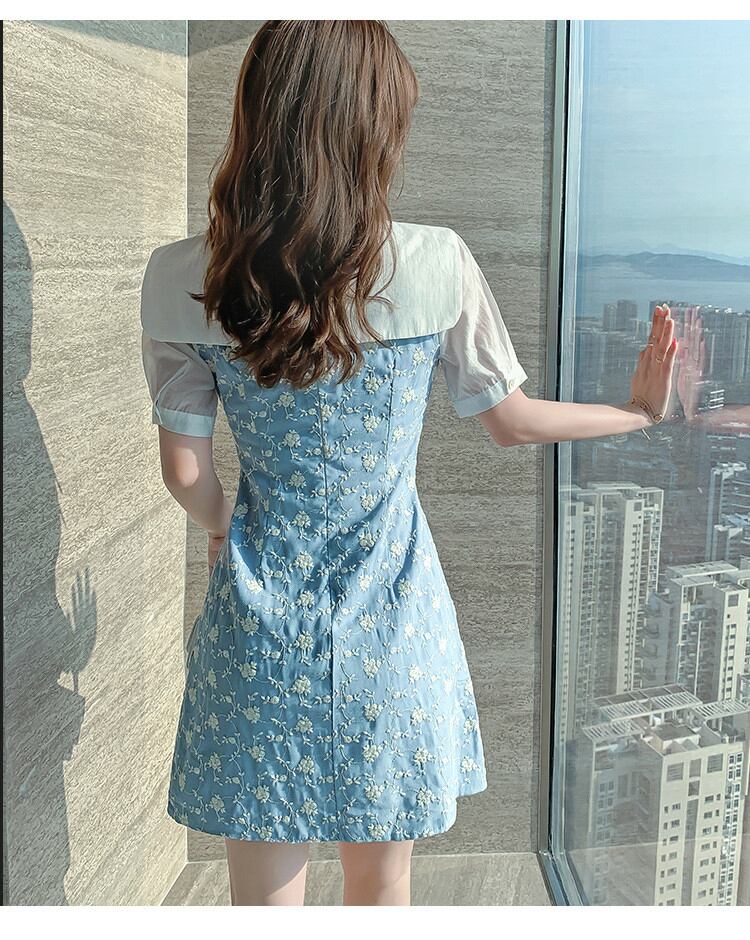 おしゃれに体型カバーが叶う sweet系 ししゅう 人形の襟 Aライン 半袖 ワンピース スリム 小さい新鮮なVGFTIOK2378103