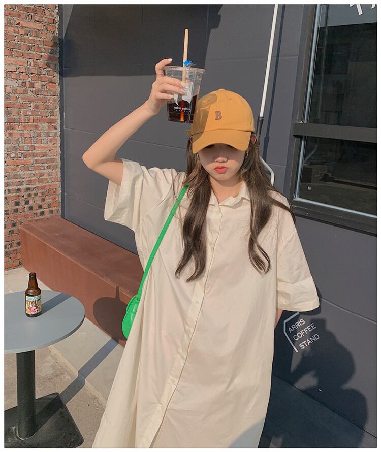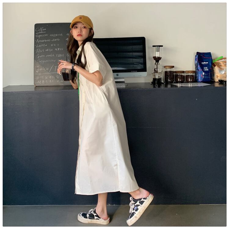 お気に入りのワンピースをGET! ロングスカート ピュアカラー シンプル 半袖 シャツワンピースVGFTIOK2378113