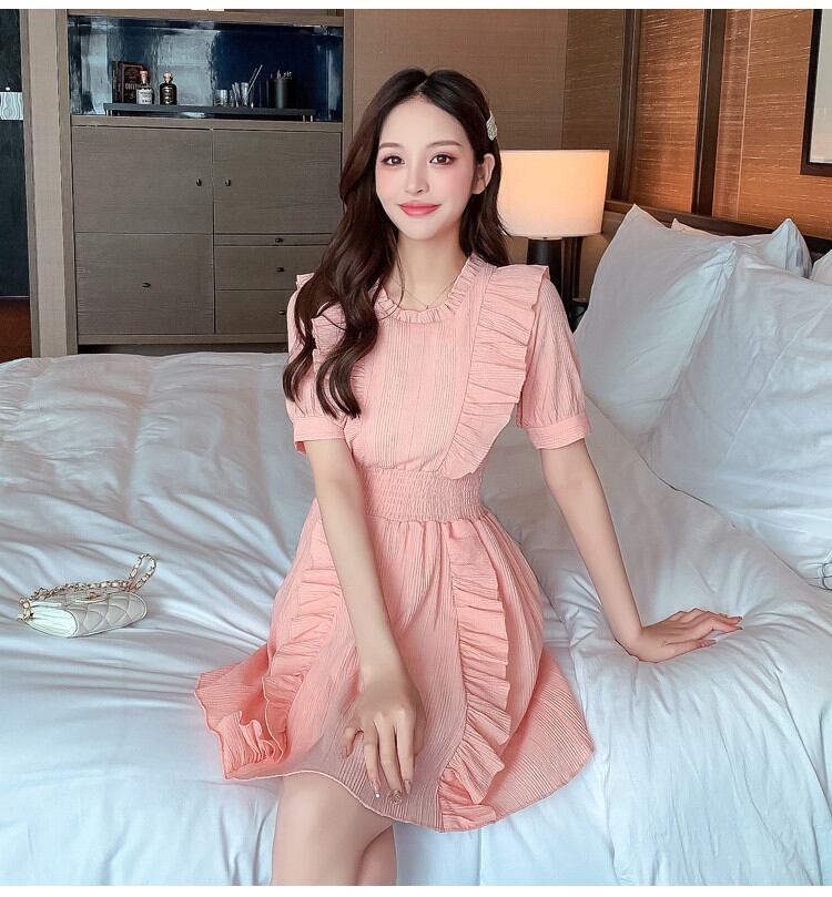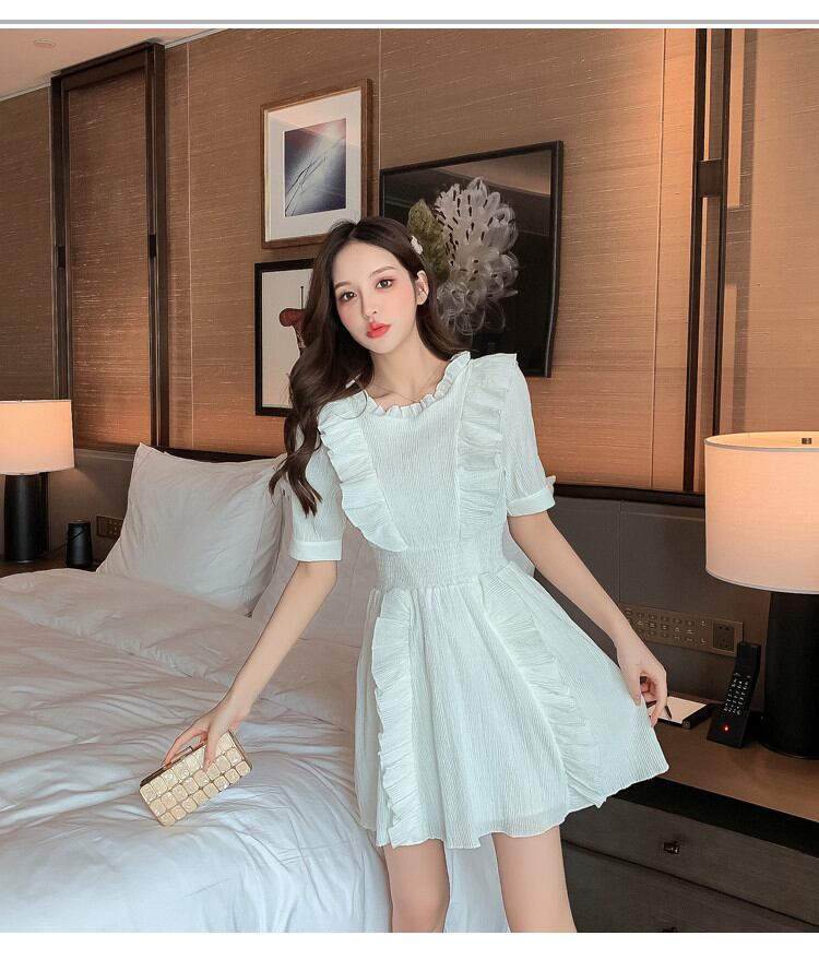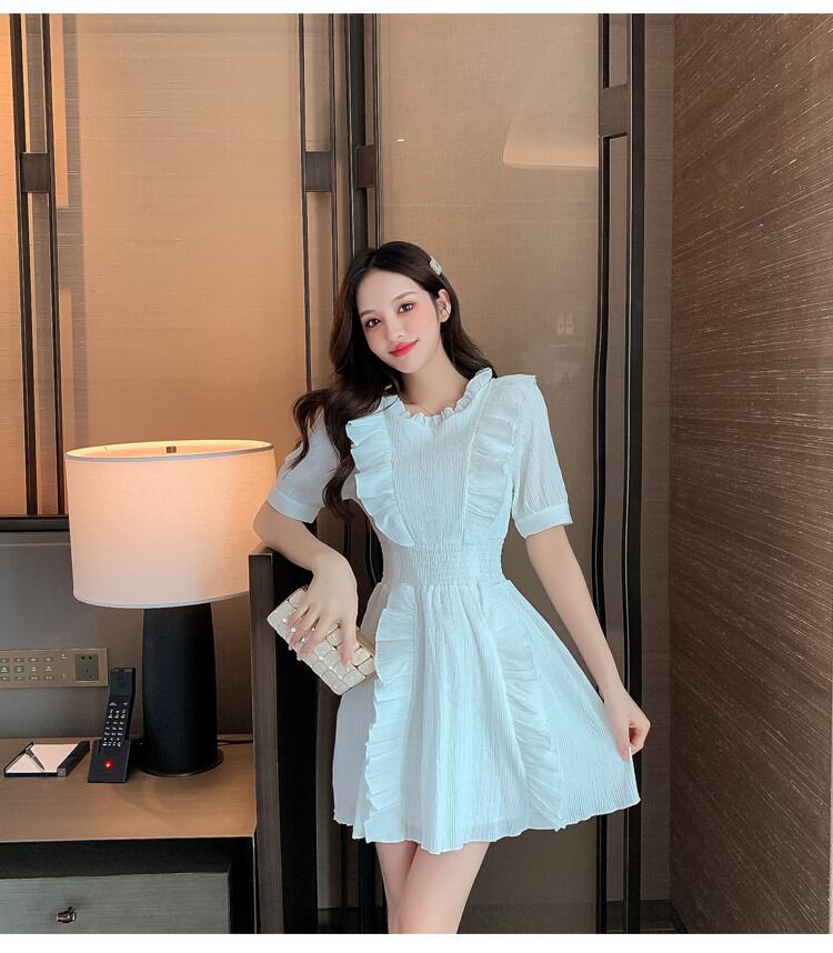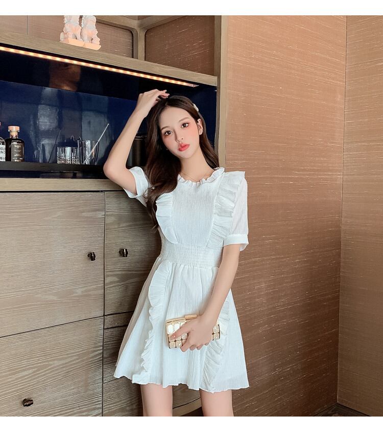 フレンチスタイル sweet系 フリル 半袖 ワンピース 初恋 夏 ピュアカラー スリム 気質