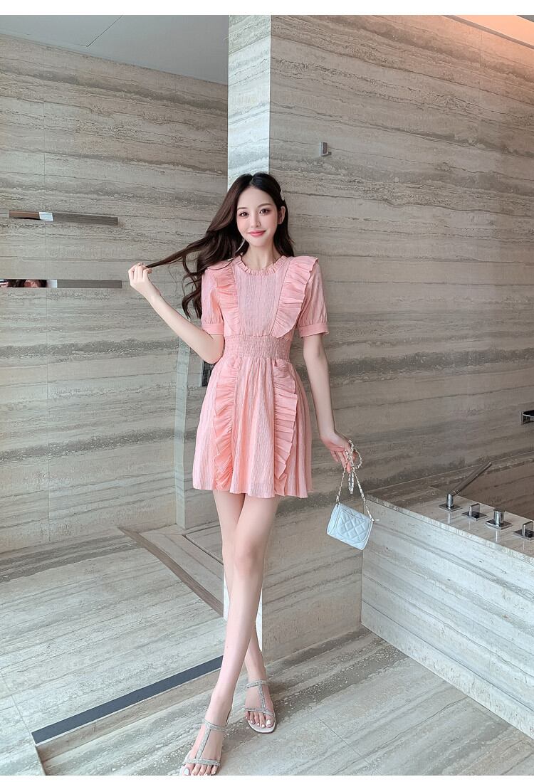 上品見えが狙える フレンチスタイル sweet系 フリル 半袖 ワンピース 初恋 夏 ピュアカラー スリム 気質VGFTIOK2378114