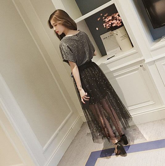 レディース春夏 オシャ 膝丈 半袖 上品 着痩せ ワンピース&レーススカート ロングワンピースセットKJUY5238106