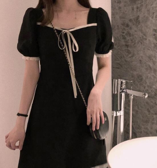 春夏新作 女 レディース ハイウエスト 半袖 パフスリーブ ミニ ワンピース ドレス 台型スカートJHBYU5875111