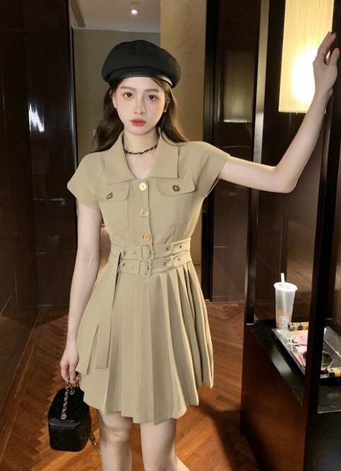 春夏新作 女 レディース ハイウエスト 半袖 ミニ ワンピース ドレス プリーツスカート S-LJHBYU5875123