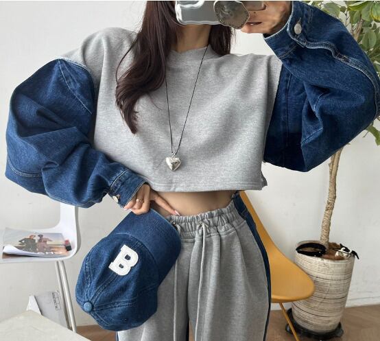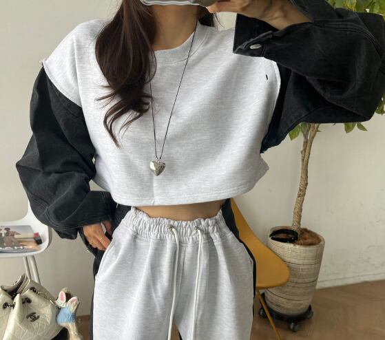 全2色 スウェット トレーナー 切り替え バイカラー 体型カバー 着痩せ シンプル カジュアルJHYM58754103