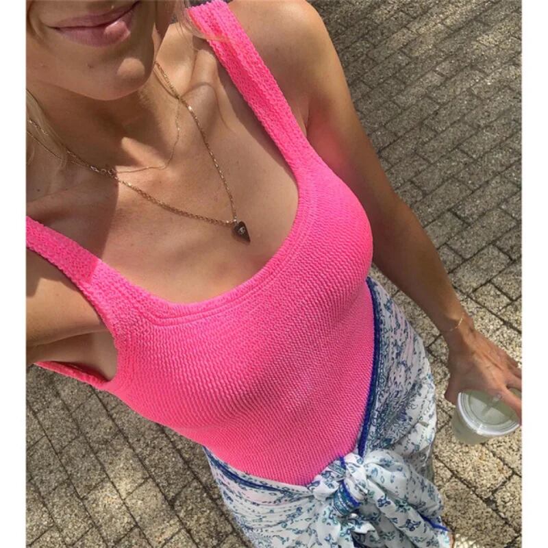 女性のための蛍光クリンクル布水着、特別な生地ビキニ、キャンディーカラー、ヨーロッパとアメリカ、2024 ビキニ Tシャツ T240618232438_02