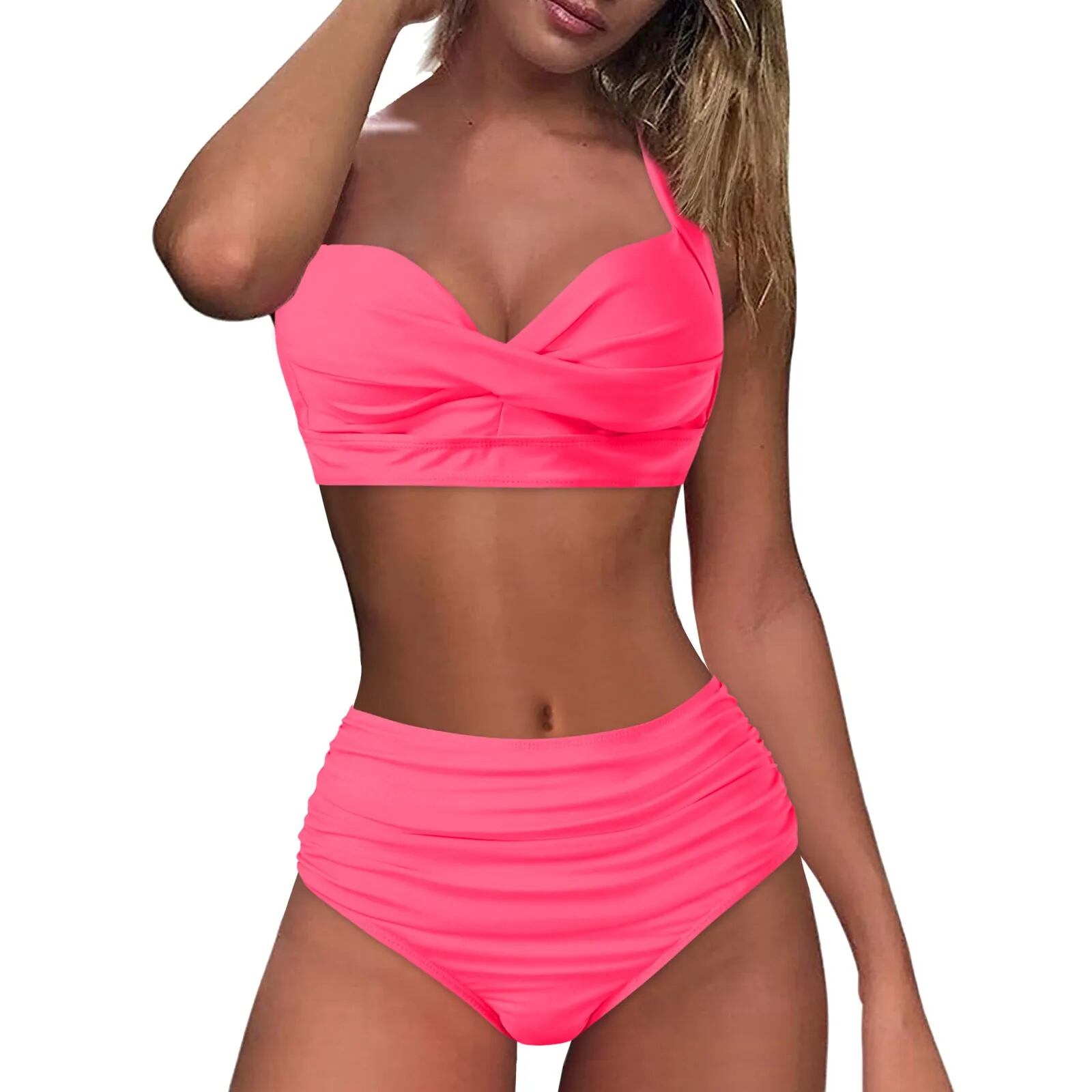 女性のためのヴィンテージギャザースイムスーツ、ハイウエスト、プッシュアップビキニセット、水着、高級カバーアップ、ビーチ、春、夏、ビーチ、2個 ビキニ Tシャツ T240618232617_07