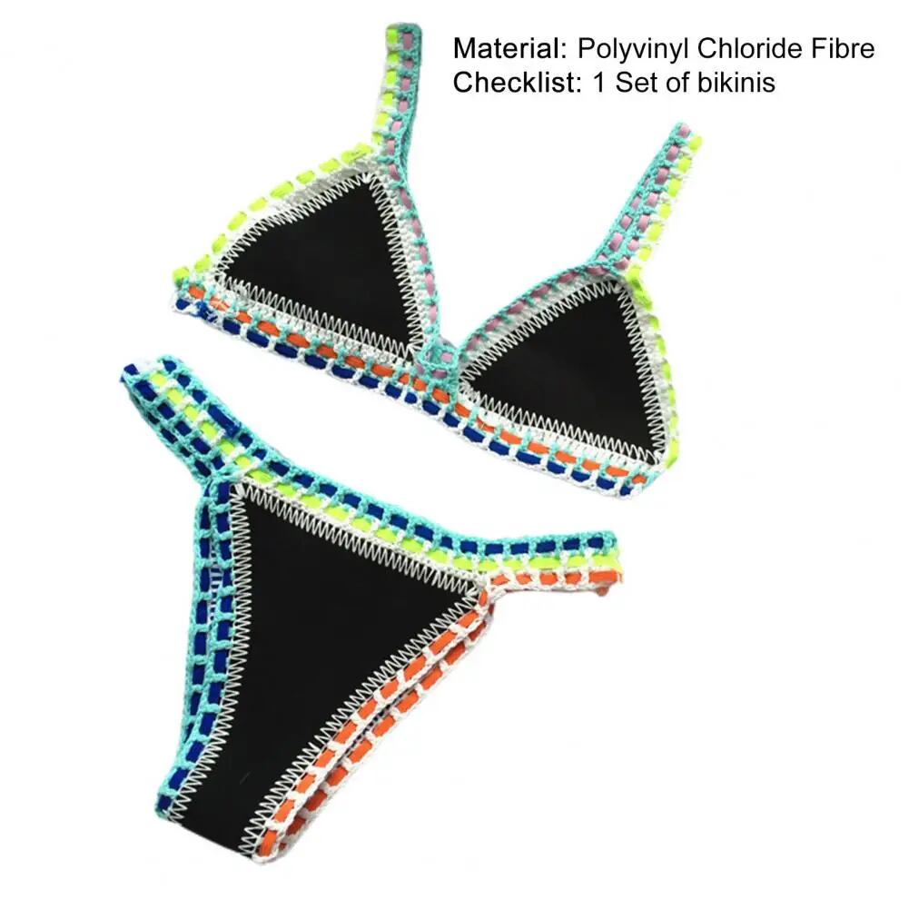 ビキニ2022 2ピース/セット水着明るい色パッチワークかぎ針編みの女性水着ビーチでの休暇セクシーな夏の水着 ビキニ Tシャツ T240618232627_01