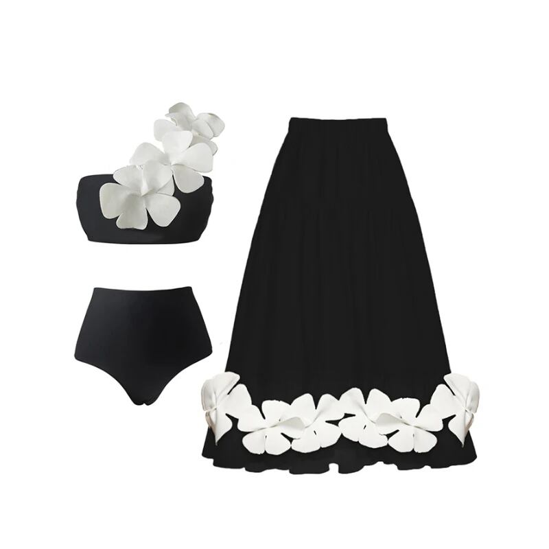 女性のための白い花のビキニ,ハイウエストのスカートの水着,黒いモノキニ,ブラジルのビーチウェア,2023 ビキニ セパレート レディース T240618174257_02