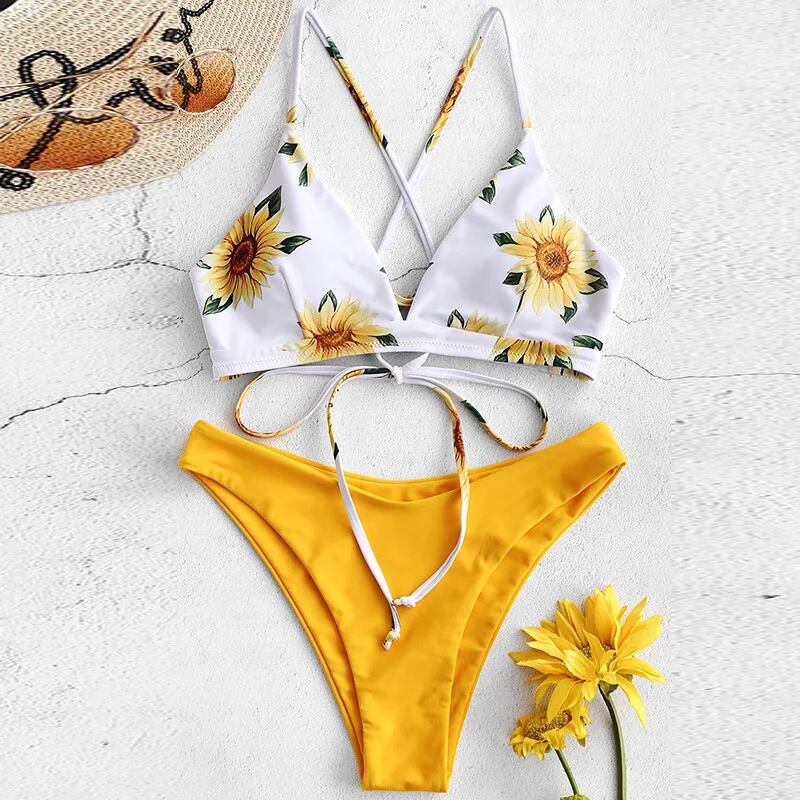 女性用ヒマワリプリント水着,パッド入りビキニ,包帯スタイル,セクシー ビキニ セパレート レディース T240618174403_05