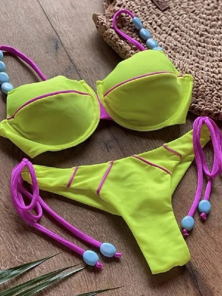 女性のための黄色のビキニセット,ビーチとプールのためのマイクロ水着,包帯,セクシー,2ピース,2023|ビキニセット| ビキニ セパレート レディース T240618174604_04