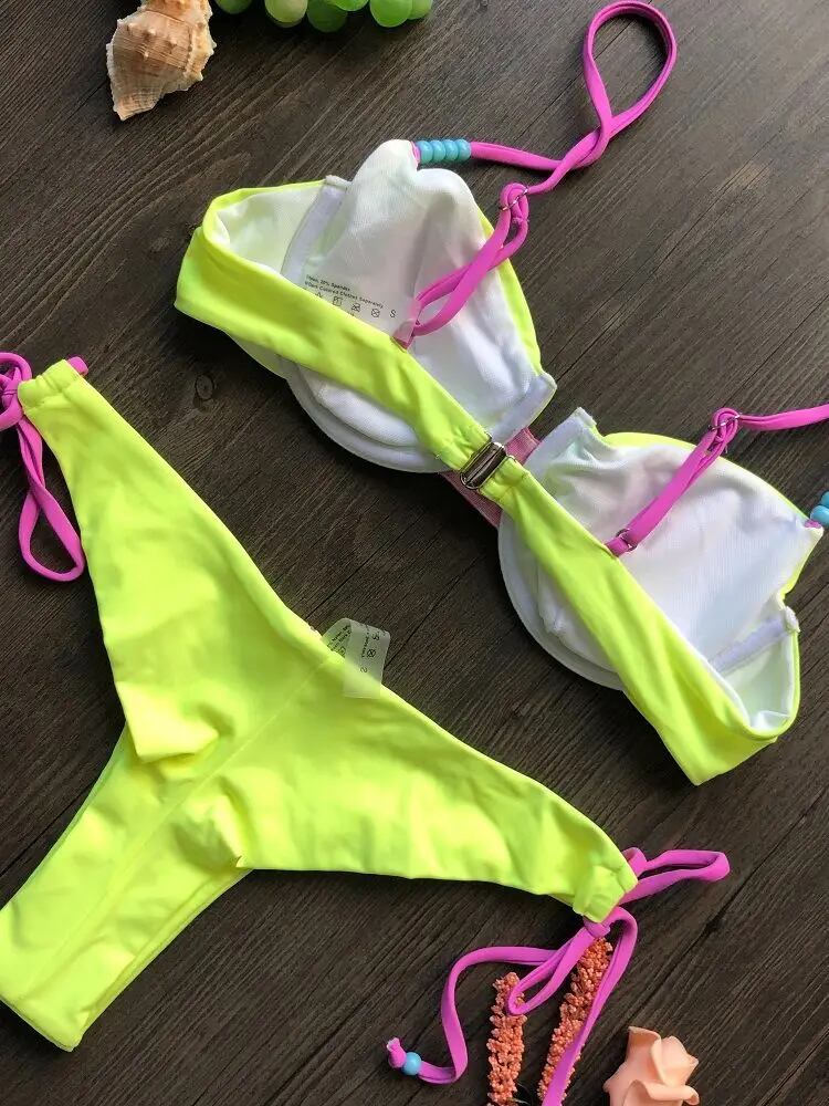 女性のための黄色のビキニセット,ビーチとプールのためのマイクロ水着,包帯,セクシー,2ピース,2023|ビキニセット| ビキニ セパレート レディース T240618174604_06