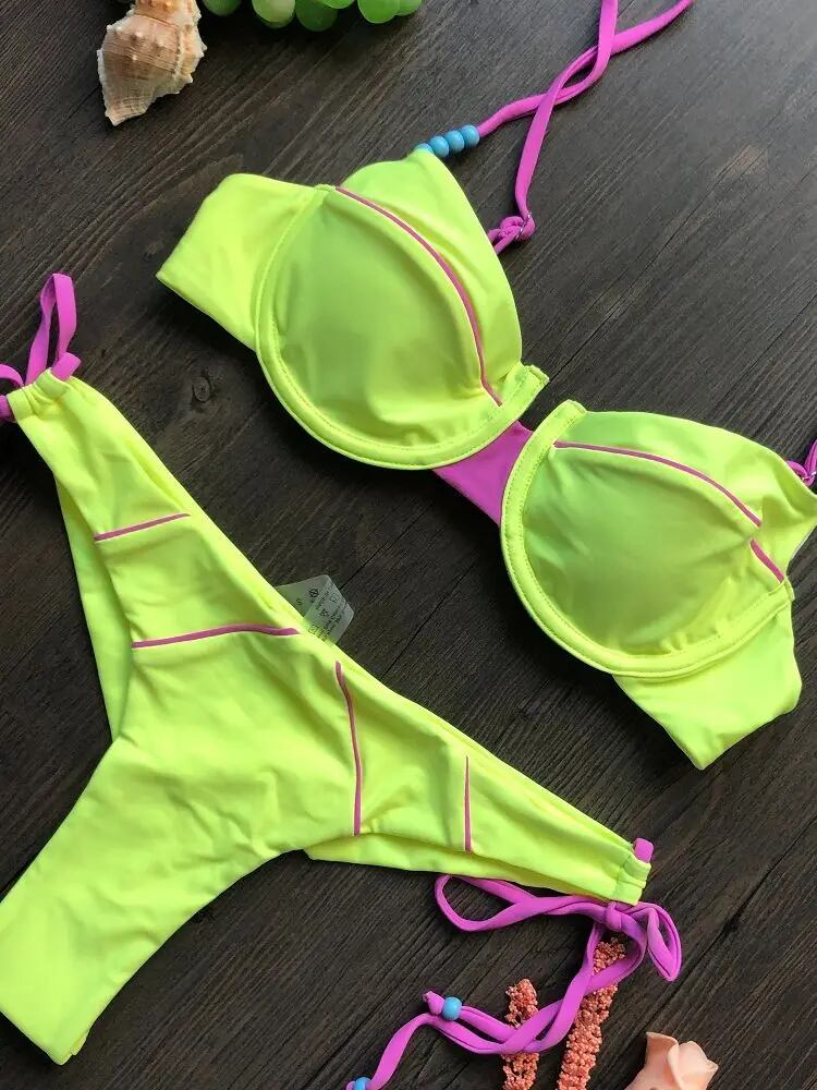 女性のための黄色のビキニセット,ビーチとプールのためのマイクロ水着,包帯,セクシー,2ピース,2023|ビキニセット| ビキニ セパレート レディース T240618174604_08