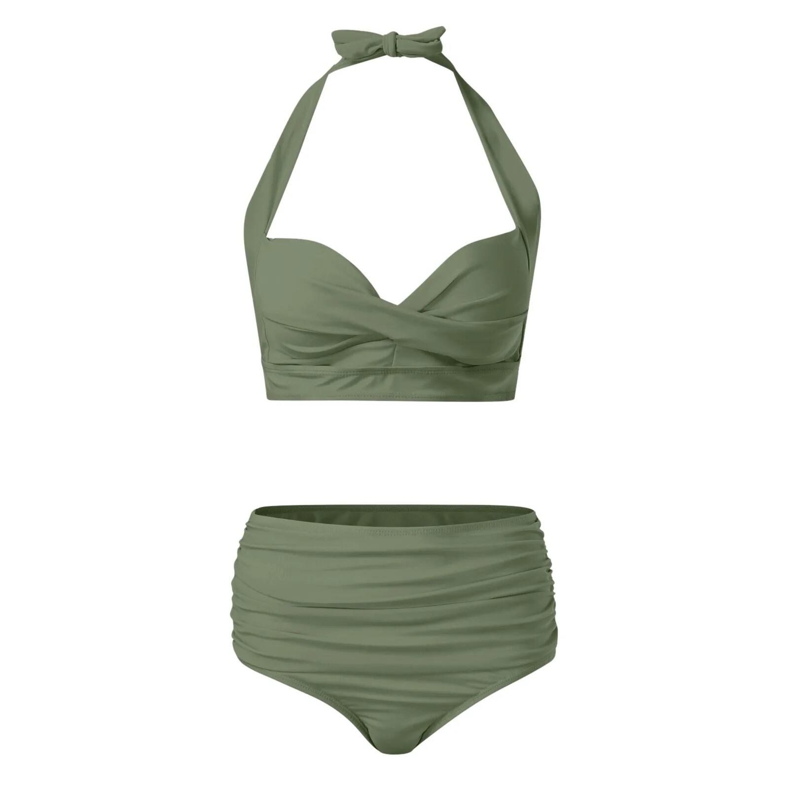 女性用ツーピース水着,レトロなスタイル,単色,ハイウエスト ビキニ セパレート レディース T240618174639_04
