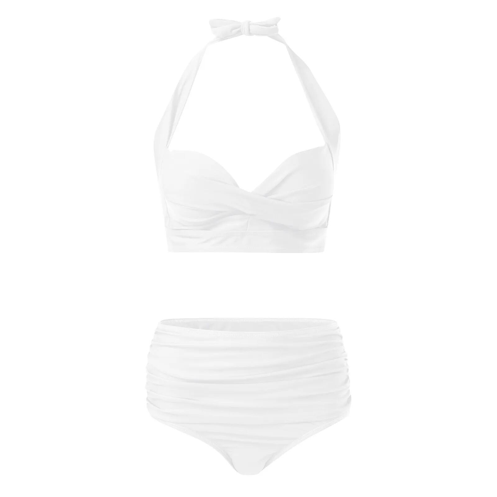 女性用ツーピース水着,レトロなスタイル,単色,ハイウエスト ビキニ セパレート レディース T240618174639_07