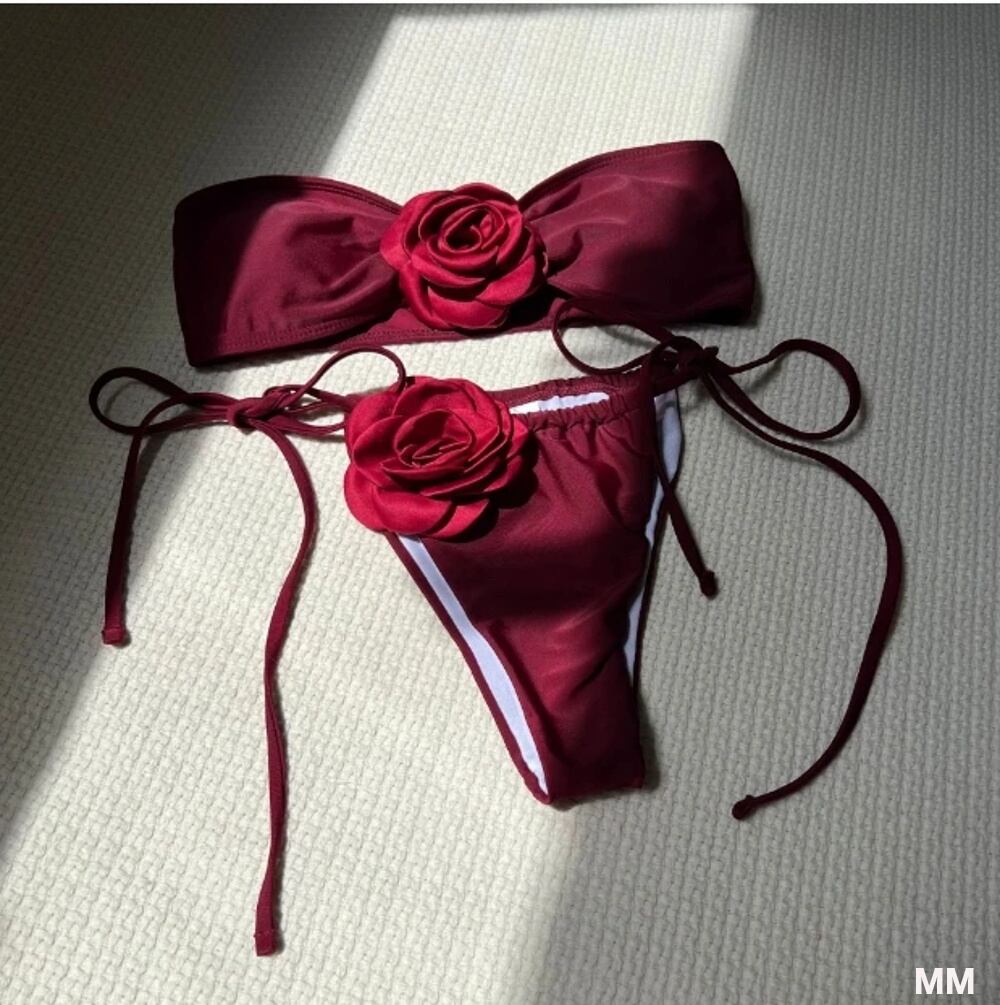 女性用ツーピース水着,セクシー,バンドゥ,3Dフローラルネクタイ,サイド,ハイカット,ビキニセット,女性用 韓国系水着 セパレート水着 ワンピース水着 T240626153652_26