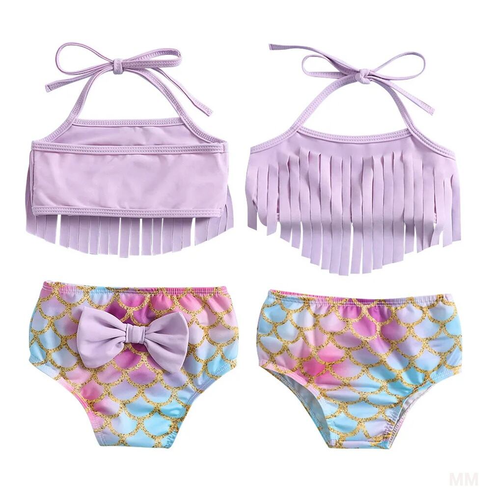 女の子のための弓とヘッドバンド付きの人魚の水着、2ピースセット、ビーチビキニ、チェストフリンジデザイン、温泉 韓国系水着 セパレート水着 ワンピース水着 T240626154127_01
