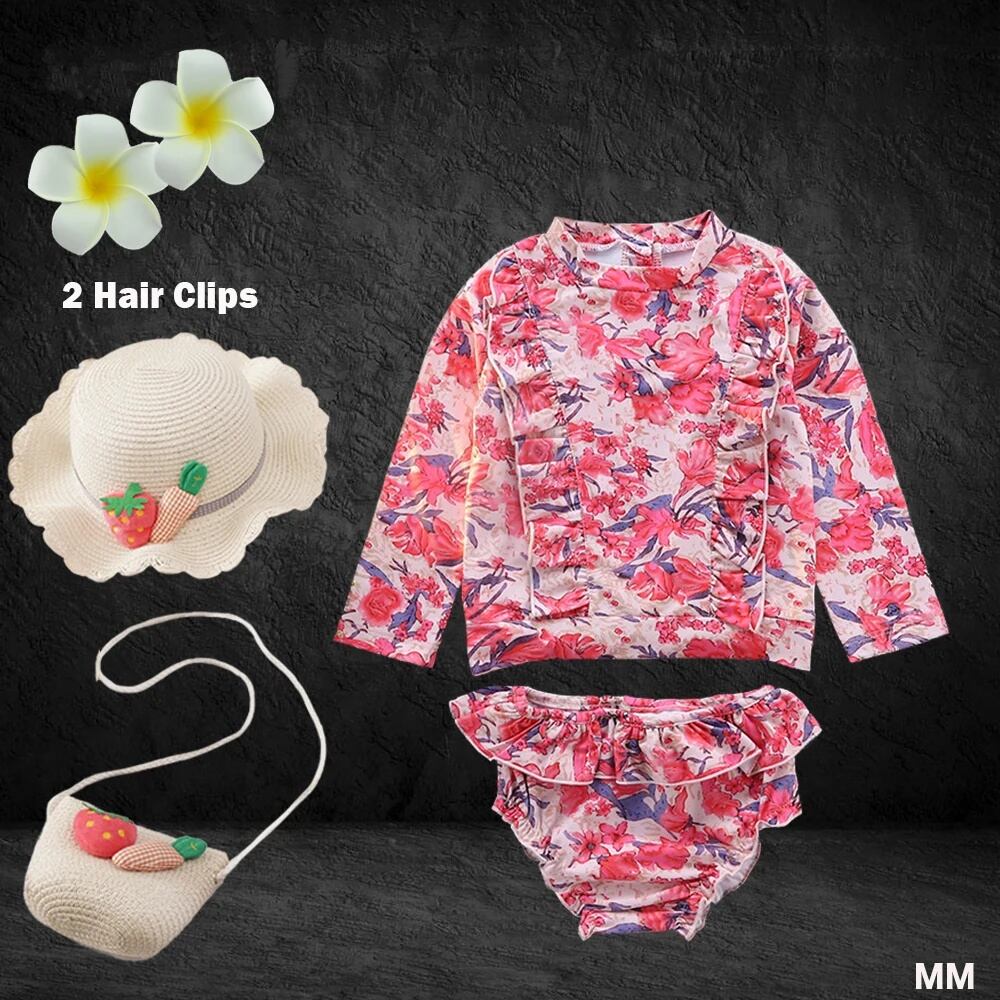 女の子のためのヴィンテージフローラルビキニ,韓国スタイルの水着,日焼け止め付き長袖フリルフラワー水着,ハイウエスト水着 韓国系水着 セパレート水着 ワンピース水着 T240626154611_08