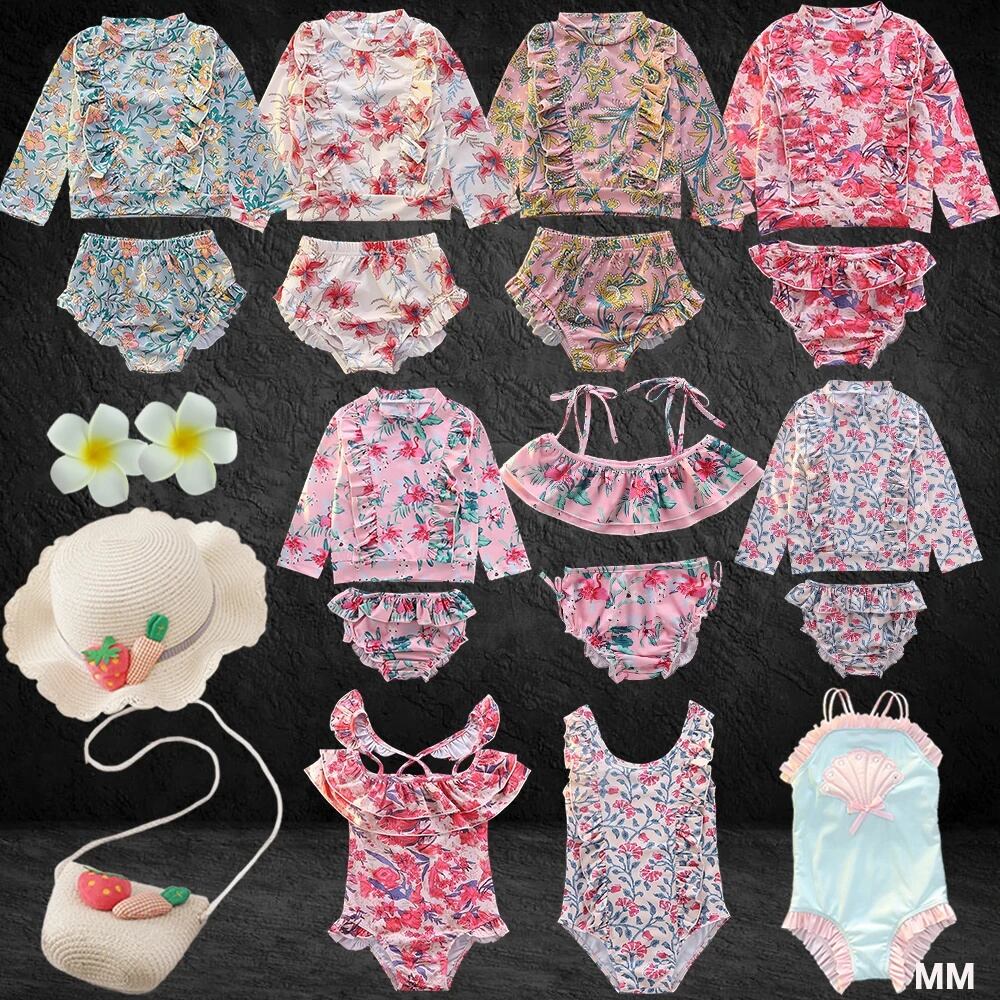 女の子のためのヴィンテージフローラルビキニ,韓国スタイルの水着,日焼け止め付き長袖フリルフラワー水着,ハイウエスト水着 韓国系水着 セパレート水着 ワンピース水着 T240626154611_17